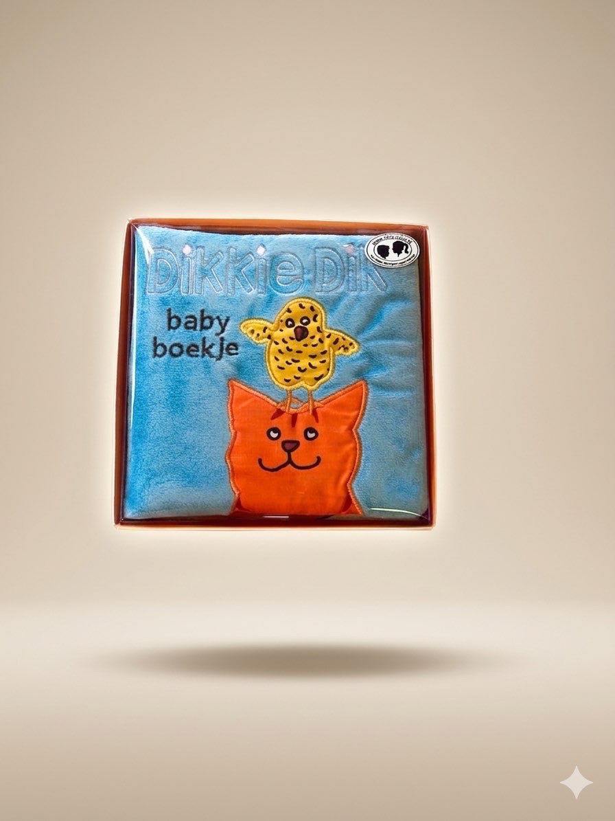 Baby boekje Dikki Dik leuk verpakt in doosje, boekje is heerlijk zacht. ideaal kraam cadeautje