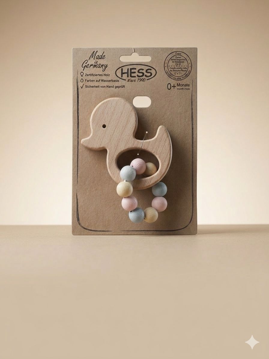 Bijtring/ rammelaar van hout eend van het merk Hess