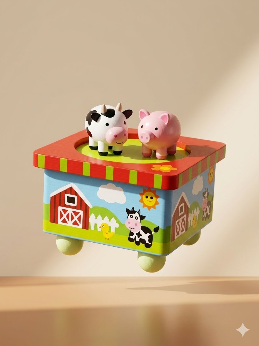 Muziek doosje van Plawood in boerderij uitgave met de melodie van OLD McDonald had a farm